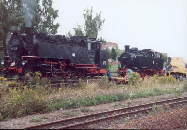 Die Lok 99 715 wird wieder an den Eigner zürckgegeben, aufgenommen am 12. August 2002.