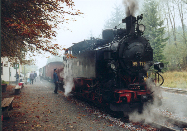 The pictures were taken on the occasion of the special and photo train runs with the 99 713 from 12-15 September 2003 and are intended to reflect the atmosphere of those days on our line. This is a small selection from various photographers. Taken on 12 to 15 September 2003.
