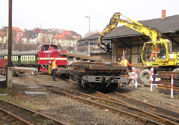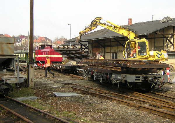 Die Bilder wurden bei den Bauarbeiten an der Strecke ab Zittau Bahnhof bis Olbersdorf-Niederdorf aufgenommen. Die Bauarbeiten fanden vom 23.02. bis zum 08.04.2004 statt, aufgenommen im März 2004.