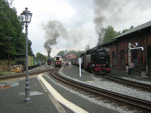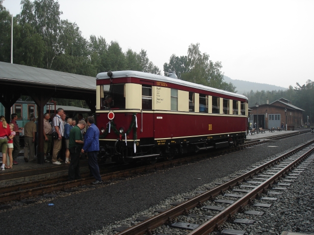 Diese Bildsammlung soll einen Eindurck von den Ereignissen des Wochenendes 10.-12.08.2007 vermitteln. Am 10.08.2007 fand um 11:00 Uhr die feierliche Einweihung der neuen Wagenausbesserungsstelle (WAS) statt. Anschließend ging es mit dem Sonderzug nach Bertsdorf zur Wiederinbetriebnahme des Triebwagens VT 137 322. Am Wochenende fand dann die Veranstaltung 'Historik Mobil' der SOEG statt.