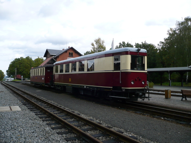 The SOEG Fan Days took place on our line from 04 - 05 October 2008. The railcar with historic sidecar 970-571, 99 758 with a vintage set and the bar car train with the observation car were on the route. A vintage car exhibition at Bertsdorf station rounded everything off.